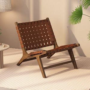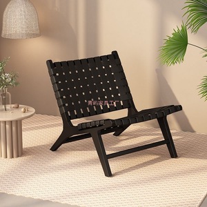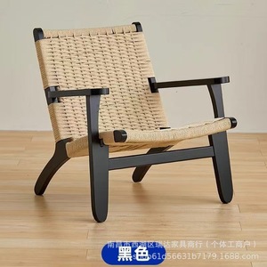 绳编实木单人沙发椅北欧阳台休闲椅子日式侘寂风小户型靠背懒人椅