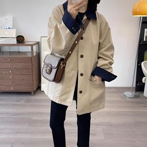翻领褶皱中长款夏季日式水洗棉布风衣潮流外套上衣秋季英伦风时尚