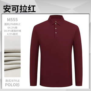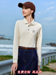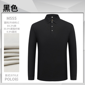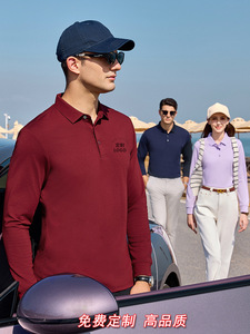高端商务长袖POLO衫定制印logo工作服工装翻领t恤文化衫刺绣文字