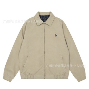 白百合同款RL拉夫男装老钱风老干部立领工装哈灵顿夹克外套