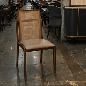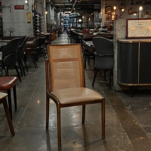 意式实木餐椅家用现代简约洽谈咖啡休闲书桌椅靠背酒店皮椅X&布艺