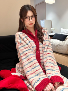 【现货】复古半边绒大码睡衣女冬季新款加绒加厚本命年家居服套装