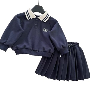 春秋女童套装新款2025韩版翻领卫衣上衣百褶短裙儿童学院风两件套