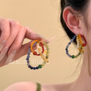 多巴胺彩色水晶串珠耳环
