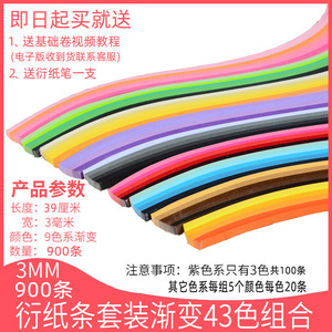 衍纸条渐变43色组合宽3MM长54 厘米共1080条