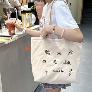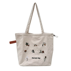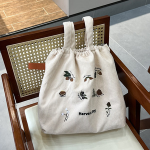 可爱毛巾绣抽绳单肩:收获日(米灯芯绒)