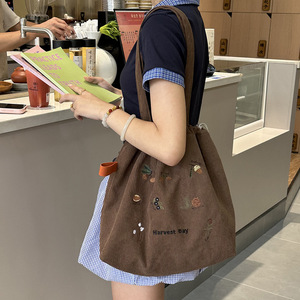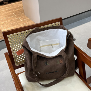 新款大容量单肩斜挎帆布包简约文艺风灯芯绒包时尚手提包