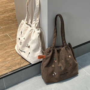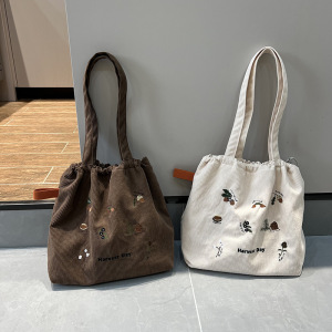 可爱毛巾绣抽绳单肩:收获日(棕灯芯绒)
