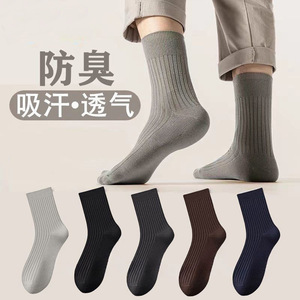 多条纹纯色棉袜简约百搭袜子吸汗透气防臭中筒袜四季通用男女袜子