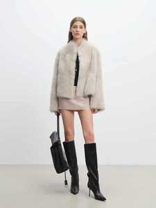 2025时髦秋冬双层小立领进口托斯卡纳皮毛一体皮草羊毛短款外套女