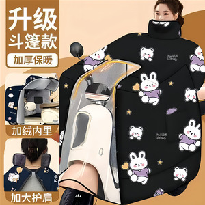 2025新款电动车挡风被冬季加大保暖斗篷全包围护肩护脖挡风罩批发