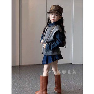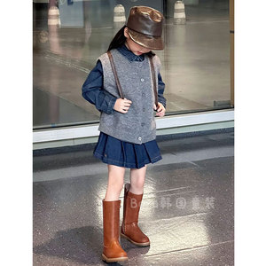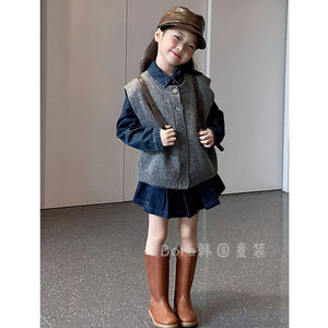 女童秋套装2025新款儿童时髦针织中大童洋气裙子潮流牛仔上衣时尚