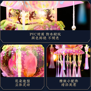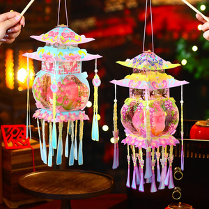 中秋灯笼幼儿园儿童手工diy材料包 国潮手提古风宫灯挂饰发光花灯