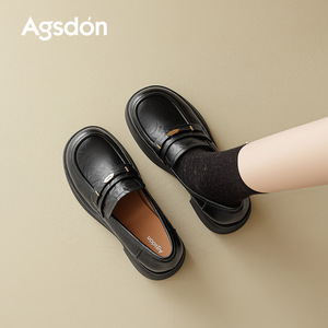 奥古狮登乐福鞋女2025新款秋季厚底黑色英伦风小皮鞋通勤休闲单鞋