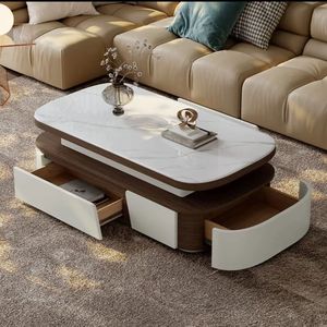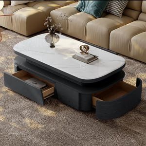 轻奢椭圆微晶石岩板茶几电视柜组合简约现代小户型茶几客厅家用