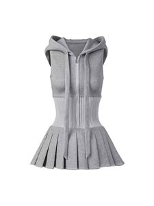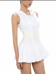 LSOU* 25aw 白色无袖百褶裙夏季连帽时尚甜酷收腰裙通勤约会女装