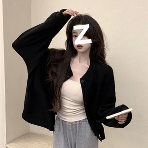 韩系小个子短款外套女春秋2025新款设计感纯色宽松休闲开衫上衣女