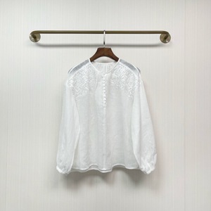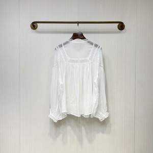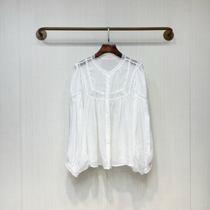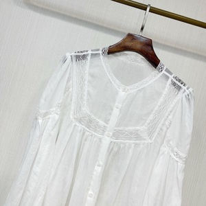 法式风琴褶蕾丝拼接宽松苎麻上衣宽松慵懒气质圆领气质减龄白衬衫