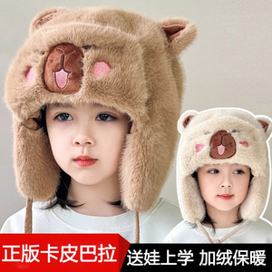 可爱卡通卡皮巴拉毛绒帽子女秋冬季防寒毛暖护耳套头加厚雷锋帽