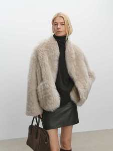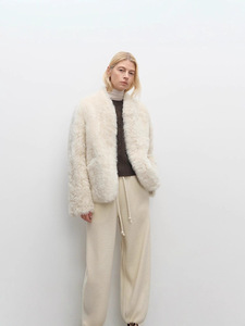 羊羔毛小圆领托卡托斯卡纳皮毛一体女皮草外套2025冬新款羊毛外套