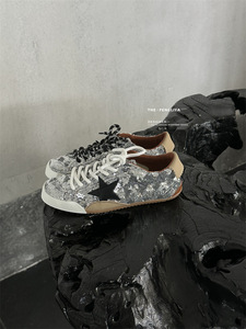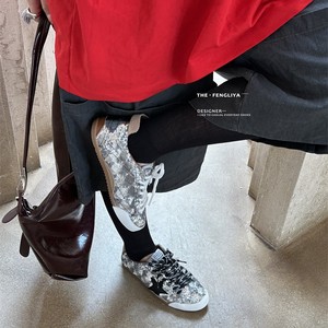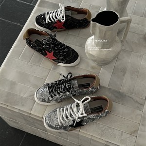 风莉雅2025新款韩版银色亮片复古做旧星星小脏鞋轻便休闲德训女鞋