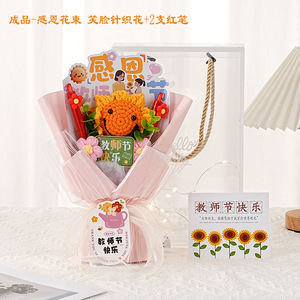 2025新款教师节礼物送女老师毛线花束笑脸向日葵手工成品针织花笔