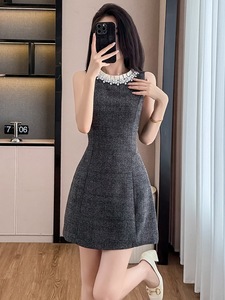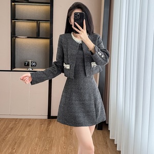 实拍:秋新款富家千金感小香风套装西装外套背心连衣裙