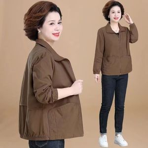 妈妈春秋风衣外套女新款洋气50岁60中老年人休闲夹克宽松大码上衣