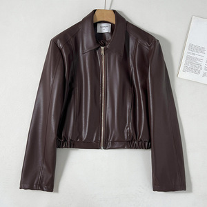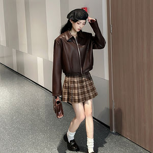 美式复古翻领皮衣外套女春秋学院风小个子pu皮夹克多色机车服上衣