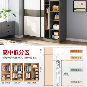 推拉门衣柜家用卧室出租房经济型简易柜子结实耐用实木质儿童衣橱