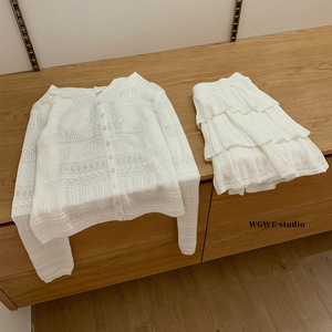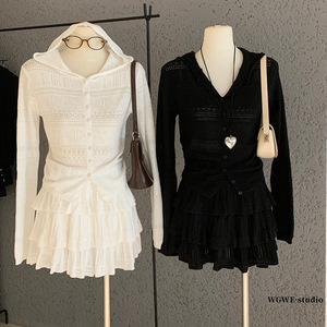 WGWE6943海星贝壳连帽长袖针织衫半身裙裤套装