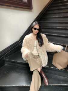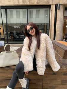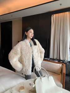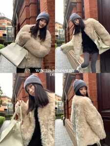 2025冬季新款羊毛裘拼工艺意大利托斯卡纳皮毛一体廓形皮草外套女