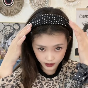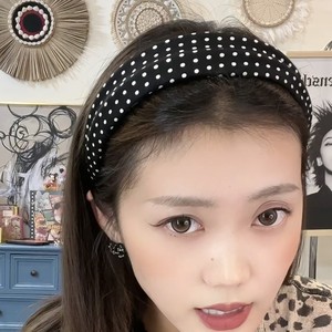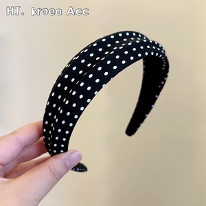 小波点增高炉顶黑白宽边发箍女2025新款洗脸头箍复古发卡头饰发捆