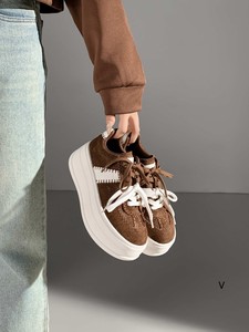 欧洲站女鞋25秋冬时尚撞色爆裂纹牛皮圆头系带休闲轻厚底德训板鞋