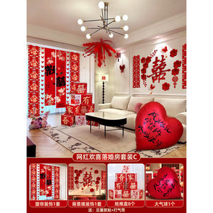 婚房布置套装网红酒店结婚装饰男女方新房卧室客厅全套婚庆礼条幅