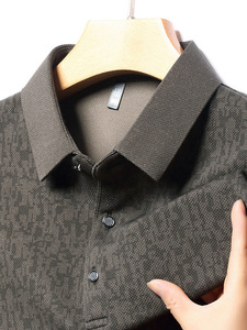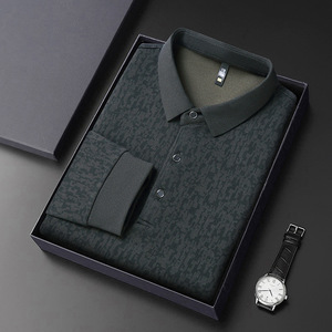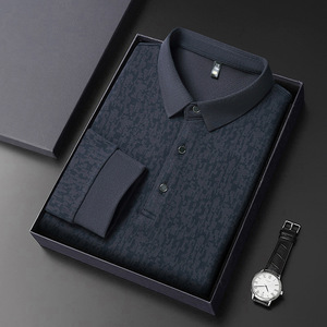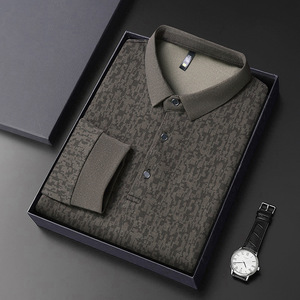 跨境秋季新款长袖菠萝格针织面料男士T恤翻领休闲时尚打底POLO衫