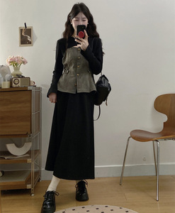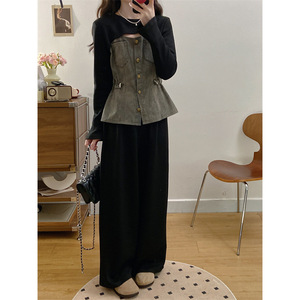 大码女装胖mm春秋季新款设计感收腰牛仔上衣+半裙裤子气质套装