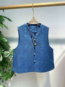 过薯莨涂河泥非遗工艺 招财貔貅雕花图腾真丝锦油花雕绸马甲秋季