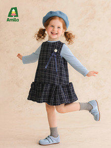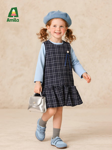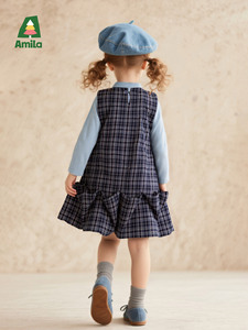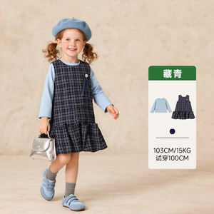 童贝童装2025年秋季新款女童裙套装格子学院风T恤连衣裙两件套