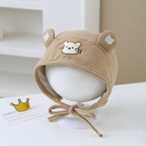 婴儿帽子棉柔软可爱超萌护耳帽小月龄宝宝春秋款系带胎帽防风帽子