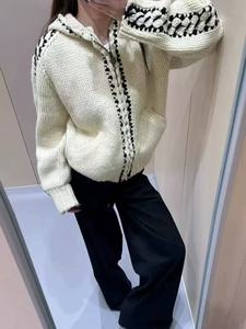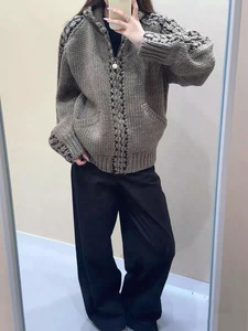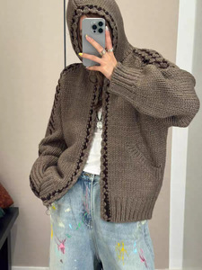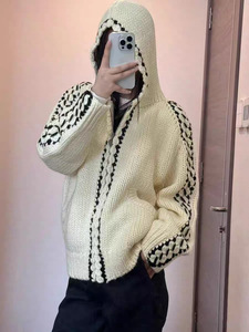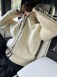 韩国高级感重工粗针连帽开衫毛衣女秋冬新款宽松手工钩花针织外套