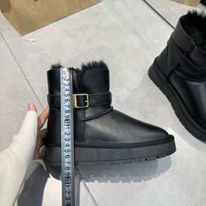 PRUGGI冬季羊皮毛一体桑坡雪地靴女皮扣骑士靴低帮保暖防滑鞋加绒