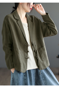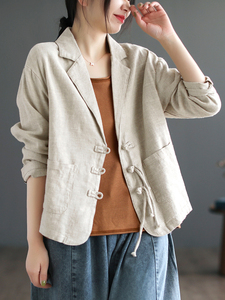 老钱风洋气时髦长袖小西装短外套女日系百搭文艺范亚麻西服开衫秋