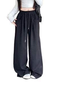 300斤加大码休闲裤女秋季慵懒风卫裤胖MM显瘦高腰垂感拖地长裤子