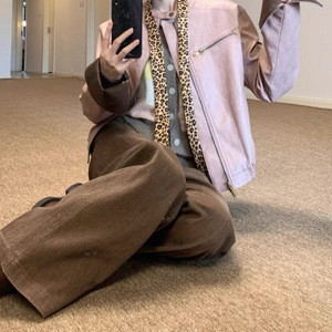 秋季2025新款时髦气质感夹克上衣美式复古撞色翻领皮衣外套女