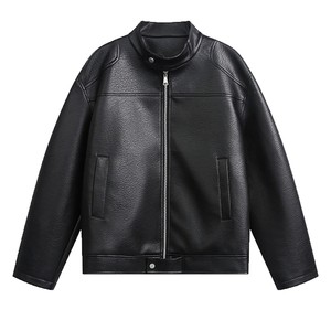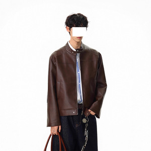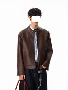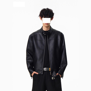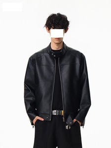黑色垫肩短款皮衣高级感痞帅外套男立领夹克cleanfit美式PU机车服