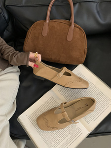 复古平底丁字扣带单鞋女2025年新款韩版小皮鞋英伦风雕花玛丽珍鞋
