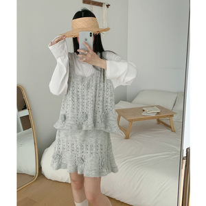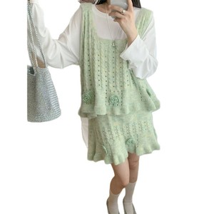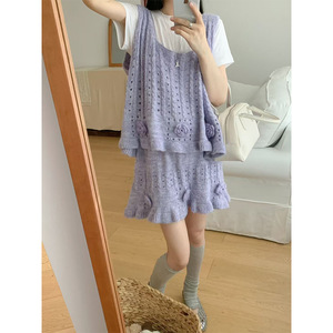 2025秋冬新款镂空立体花朵针织马甲半身裙两件套温柔风毛衣套装女
