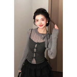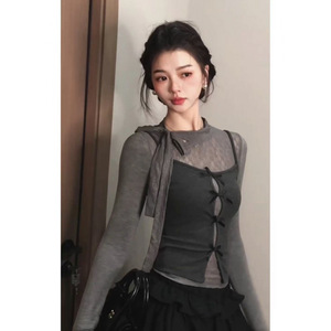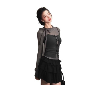 纯欲辣妹风气质蝴蝶结吊带背心网纱打底衫上衣套装女秋季2025新款