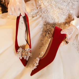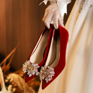 X338-12高级感婚鞋新娘鞋2025新款红色高跟鞋秀禾结婚鞋婚纱34-43